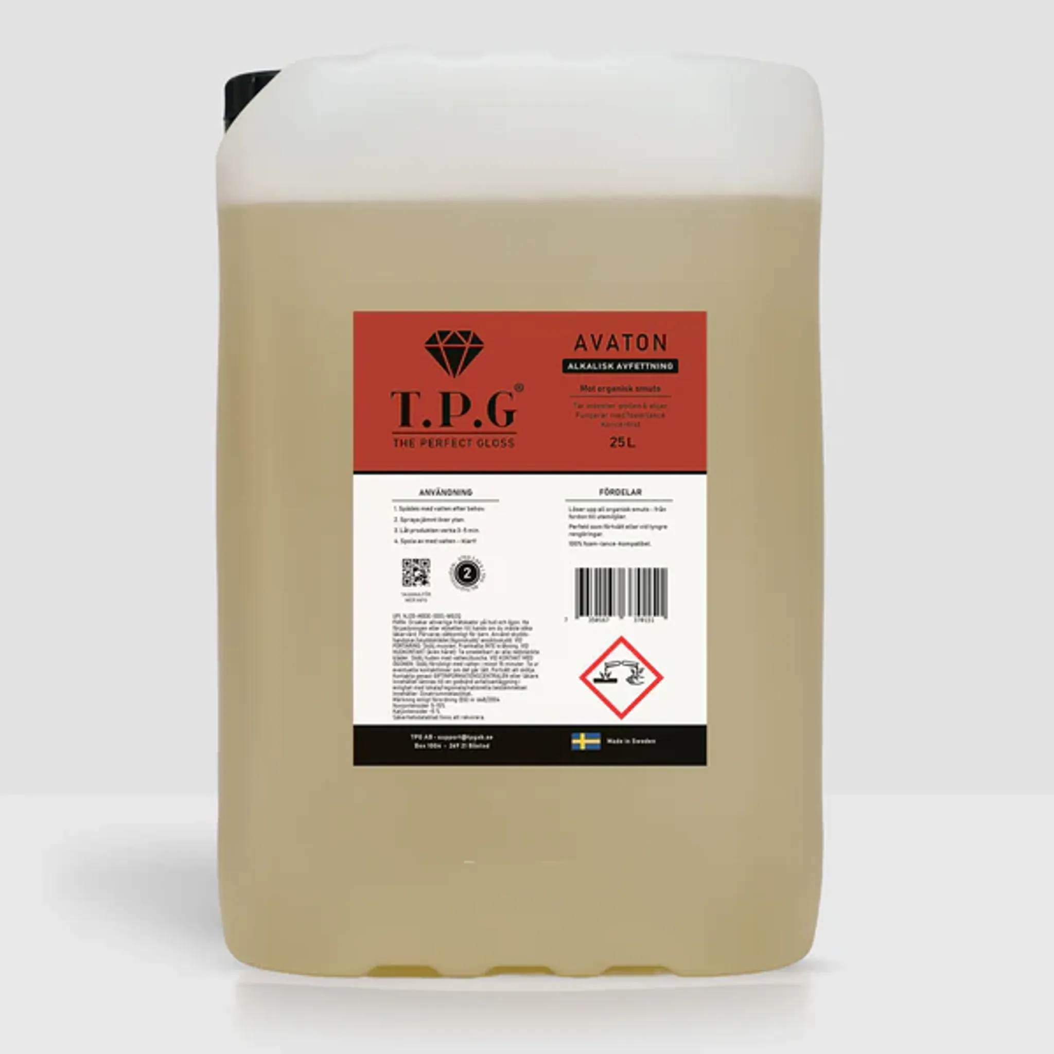 Avaton Alkalisk Avfettning från TPG, The Perfect Gloss, är en mångsidig och effektiv avfettning som löser upp organisk smuts, trafikfilm och insektsrester med lätthet. Den unika formulan kan spädas efter behov för att anpassas till allt från lättare smuts till tuffare rengöringsutmaningar. Perfekt för bilägare som vill ha en kraftfull men skonsam rengöringslösning!