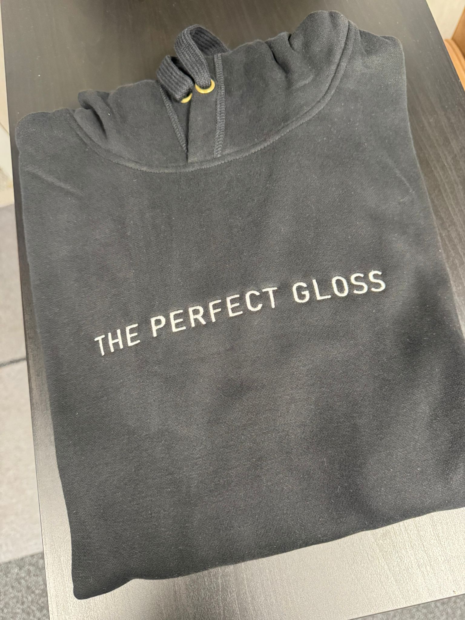 Beskrivning av Hoodie The Perfect Gloss Svart | Beige brodyr