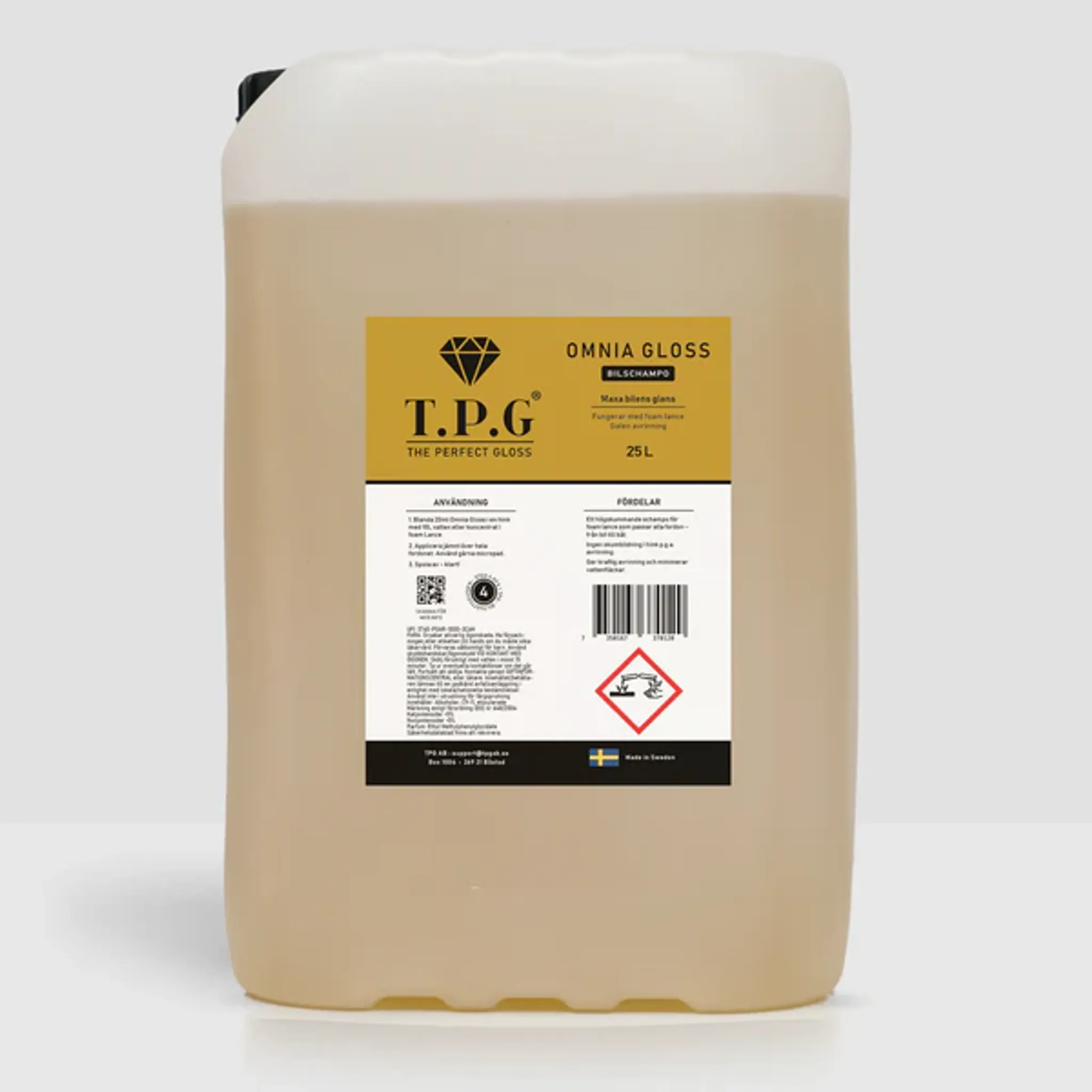 Omnia Gloss Schampo från TPG är ett högskummande bilschampo som ger fantastisk avrinning och sprider en härlig doft under tvättprocessen. Det kan användas på alla typer av fordon och ger en grundlig rengöring med en blank och ren yta nästan utan vattenfläckar. Upplev en skinande ren och väldoftande bil med Omnia Gloss Schampo.
